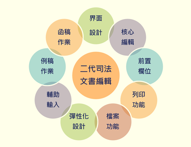 提供法官、書記官有效率的製作裁判書、公文函稿。 - 支援Unicode及司法院造字
