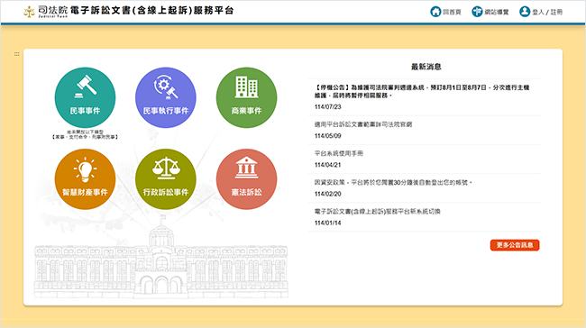 電子訴訟平台主要是提供律師、民眾有案件要遞送法院時,可以在平台上作業,不需要親自跑法院。